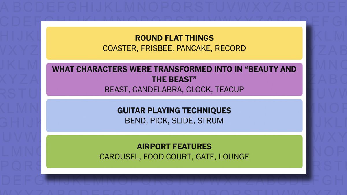 New Connections is one of several increasingly popular word games made by the New York Times. It challenges you to find groups of four objects that share something in common, and each group has another level of difficulty: green is light, yellow a little harder, blue often quite hard and purple usually very difficult.