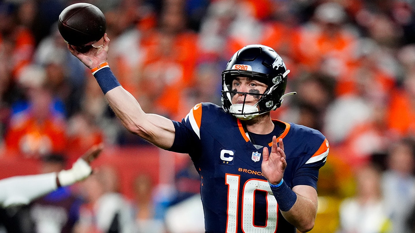 Denver Broncos Quarterback Bo Nix (10) makes a passport in the fourth quarter against Cincinnati Bengals at Empower Field at Mile High in Denver, Colorado, on September 29, 2025. (Ron Chenoy/Imag images)