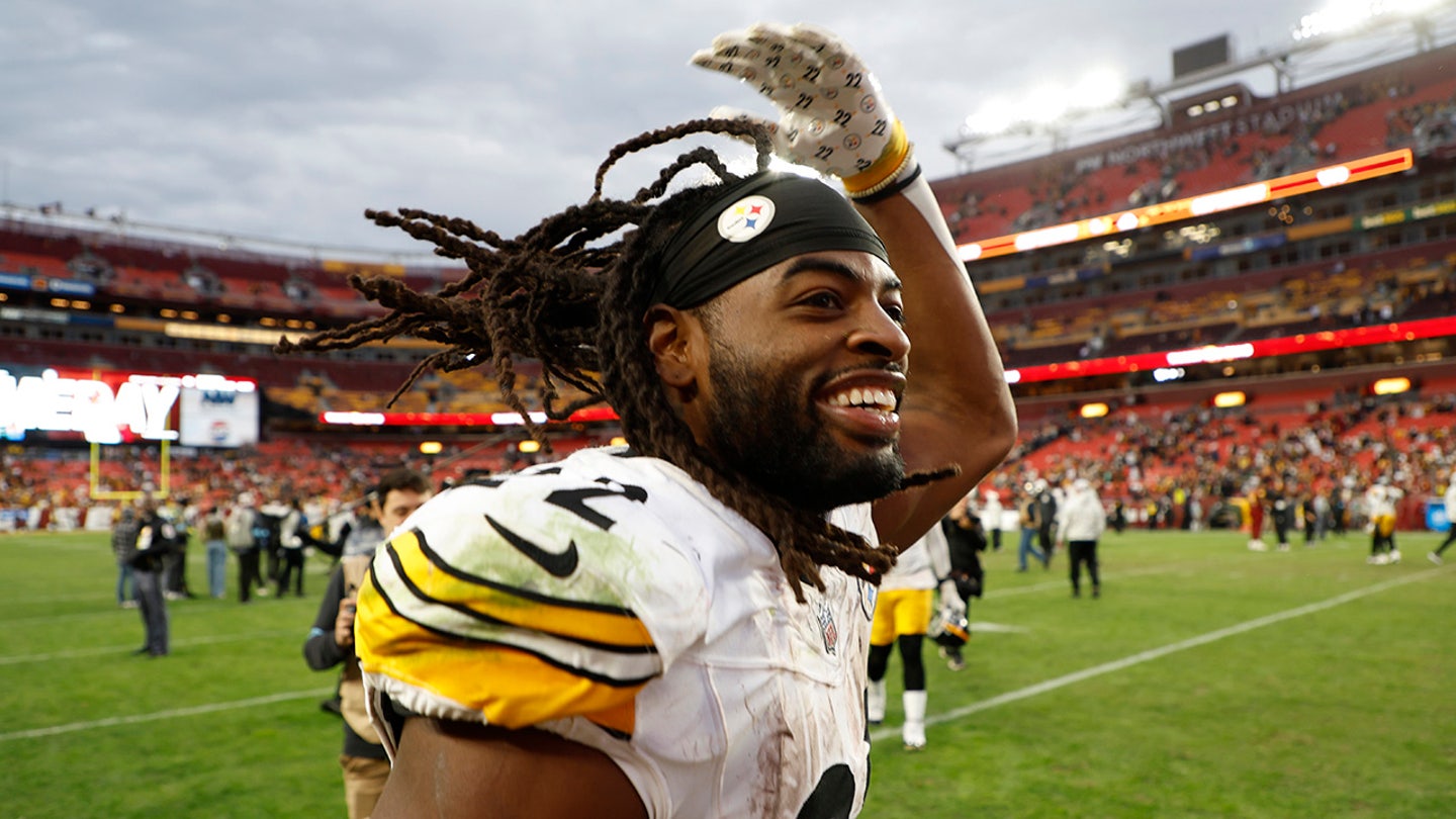 Pittsburgh Steelers, who runs back Najee Harris celebrates as he leaves the field after a Steelers game against Washington commanders at Northwest Stadium in Landover, Md., November 10, 2024. (GEOFF BURKE/IMAGN -PICTURES)