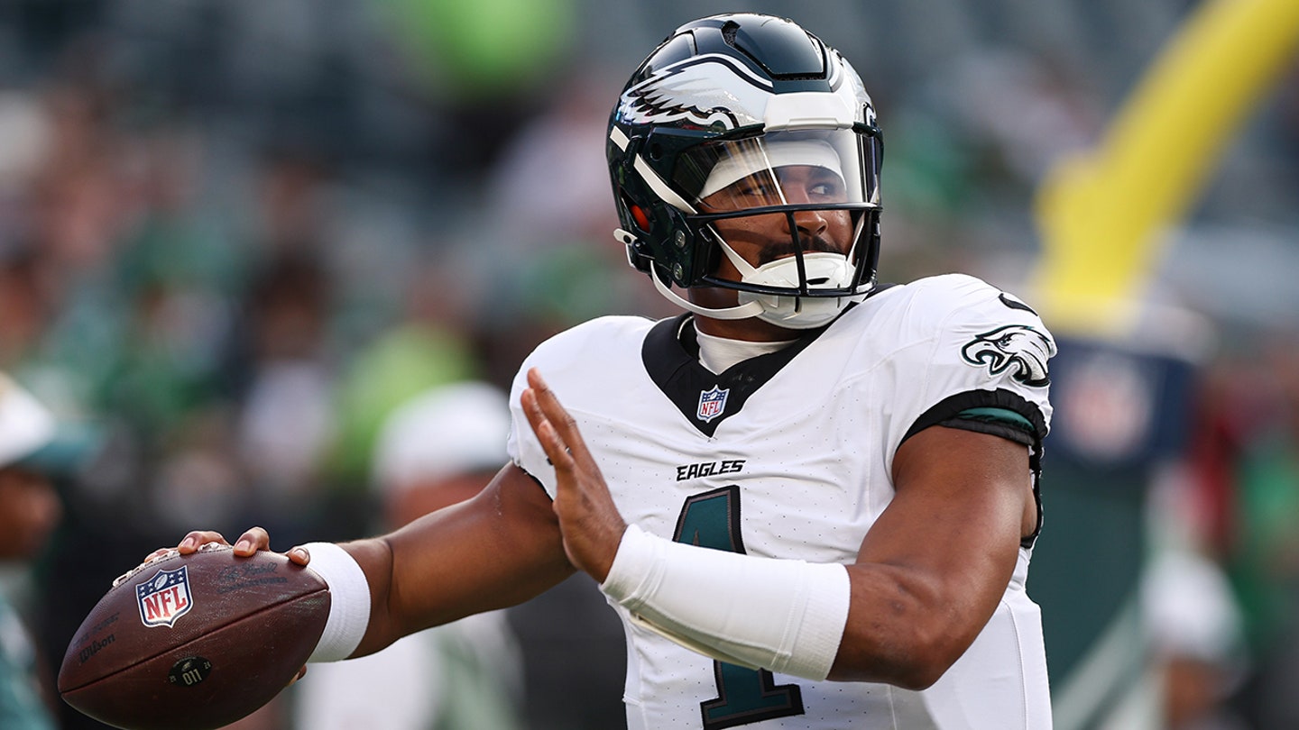Philadelphia Eagles quarterback Jalen Hurts (1) throws the ball while warming up before a game against the Cincinnati Bengals at Lincoln Financial Field. (Bill Streicher/Imagn Images)