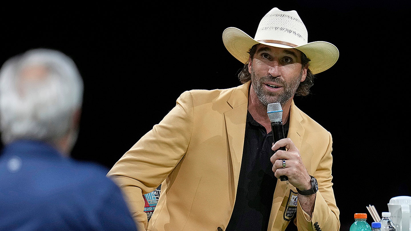 Jared Allen participates in the unwritten & tailgate rounding table event, Sunday 3 August 2025, in Canton, Ohio. (AP Photo/Sue Ogrocki)