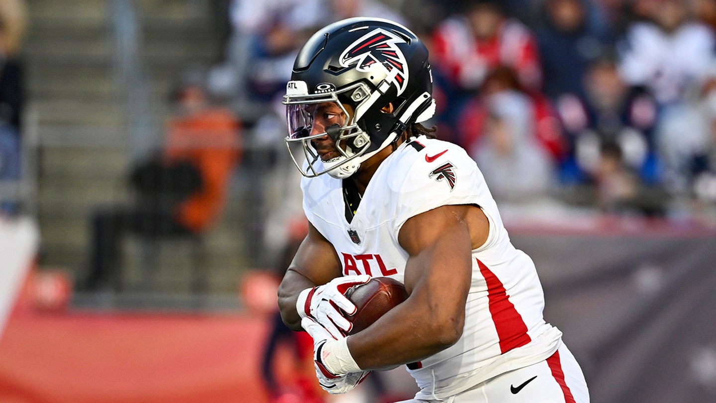 Atlanta Falcons running back Bijan Robinson (7) runs the ball against the New England Patriots in the third quarter at Gillette Stadium in Foxborough, Mass., on Nov. 2, 2025. (Eric Canha/Imagn Images)