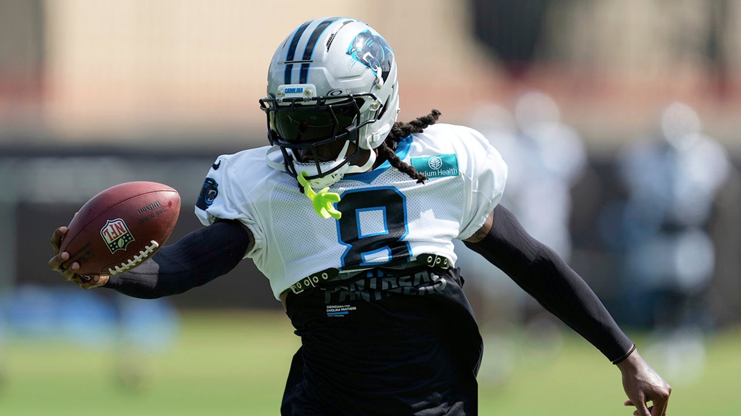 Carolina Panthers Cornerback Jaycee Horn (8) goes off after exercise at training camp on July 26, 2025 in Charlotte, North Carolina. (Scott Kinser/Imag images)