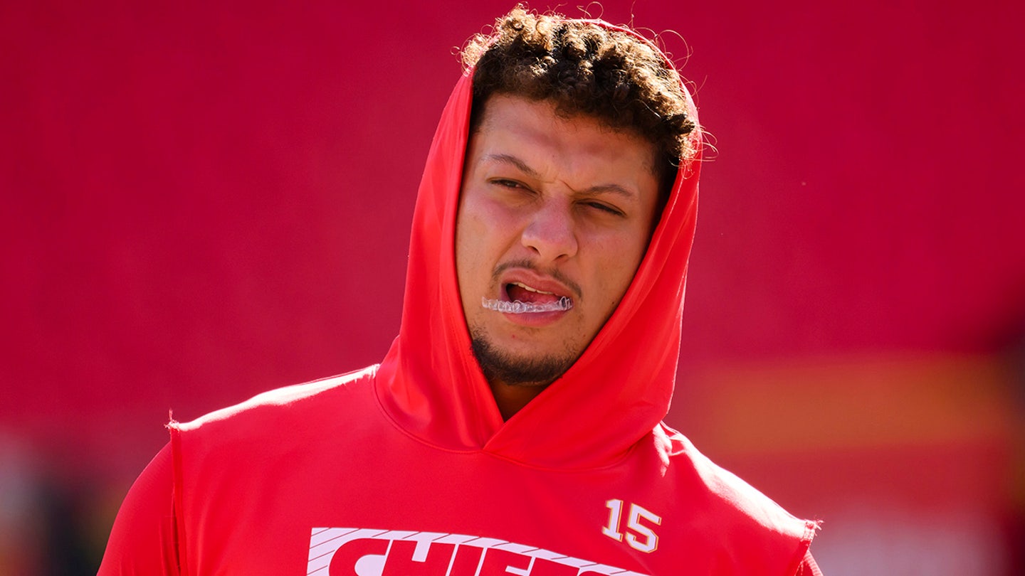Kansas City Chiefs Quarterback Patrick Mahomes chews his mouth protection during warm -ups before an NFL football match against Denver Broncos, Sunday 10 November 2024 in Kansas City, Mo. (AP Photo/Reed Hoffmann, File)