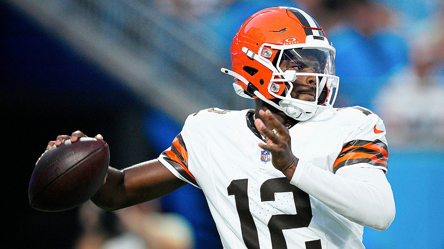 Cleveland Browns Quarterback Shedeur Sanders is watching during the first half of a Forsy season NFL Football Fight against Carolina Panthers Friday, August 8, 2025 in Charlotte, North Carolina. (AP Photo/Rusty Jones)