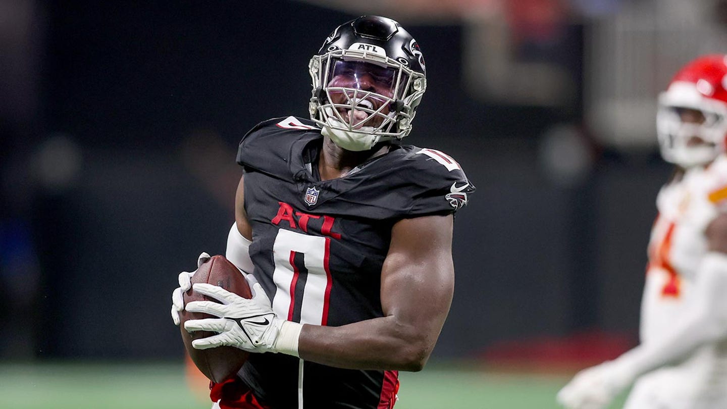 Atlanta Falcons Linebacker Lorenzo Carter (0) celebrates after a defensive stop against Kansas City Chiefs in the fourth quarter at Mercedes-Benz Stadium on September 22, 2024 in Atlanta, Georgia. (Brett Davis-Preferred Pictures)