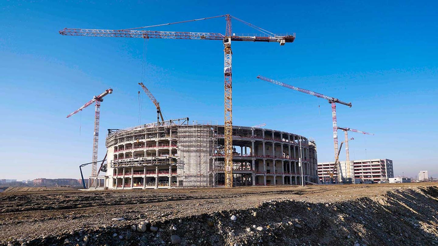 Construction continues at the Milano Santagiulia Ice Hockey Arena for the Milano Cortina 2026 Winter Olympics in Milan, Italy on January 15, 2025. (AP Photo/Luca Bruno, File)