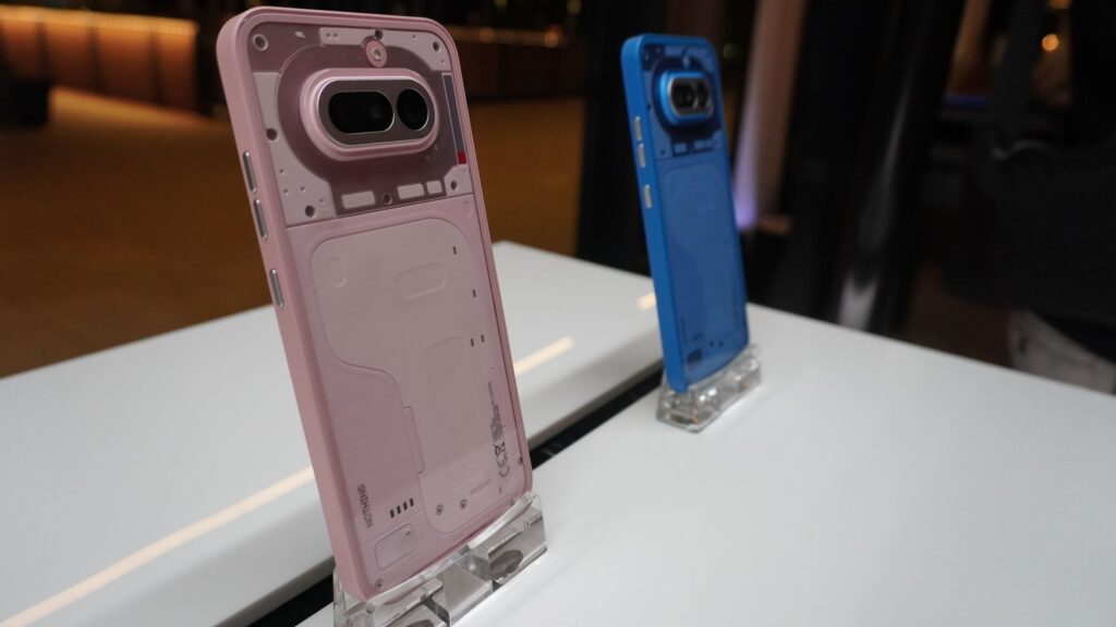 The black and white models looked like standard Nothing releases, if the company’s phones can look “standard”: they’re blocky robot-like devices with some transparent elements.