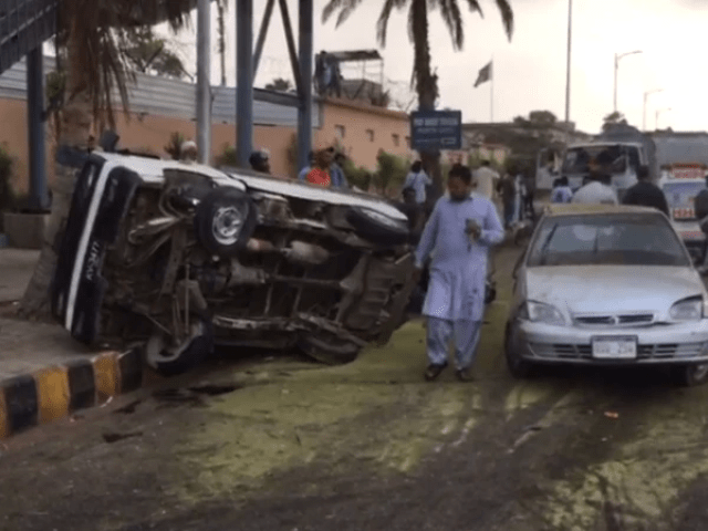 At least one person was killed and two others, including a traffic police officer, were injured in a collision with multiple vehicles on Shahrah-e-Faisal near Karachi’s DRIGHT ROAD Friday, police officers confirmed.
