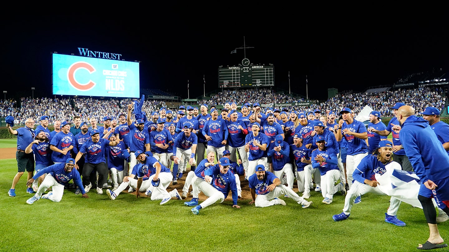 Chicago Cubs is for a team photo after defeating San Diego Padres to move on to the National League Division series at Wrigley Field. (David Banks/Imag images)