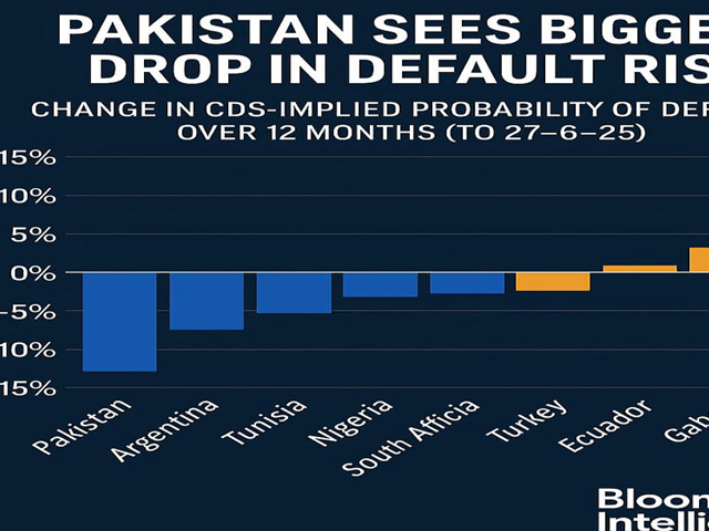 According to Bloomberg’s research department, Pakistan’s Credit Standard SWAP (CDS) decreased probability of default from 59 percent to 47 percent over the last 12 months -a decrease in 11 percentage points and the largest reduction between new markets globally.