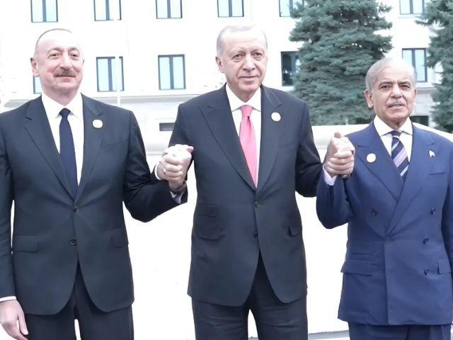 As a symbolic gesture of unity, the leaders kept hands to express the exemplary fraternal connections and solidarity among Pakistan, Türkiye and Azerbaijan.