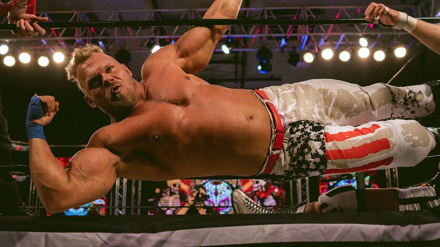 Alex Hammerstone poses on the ropes during a Major League Wrestling match. (MLW)