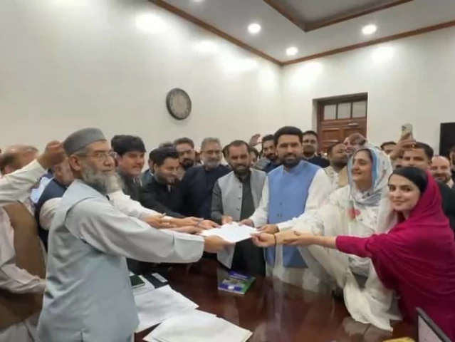 On the opposition side, the three candidates together filed their nomination papers, accompanied by former chief minister Akram Khan Durrani and other opposition legislators. The deadline for submitting nomination papers was set at 1 p.m. 15 Sunday. After checking the speaker, all four nomination papers were declared valid.