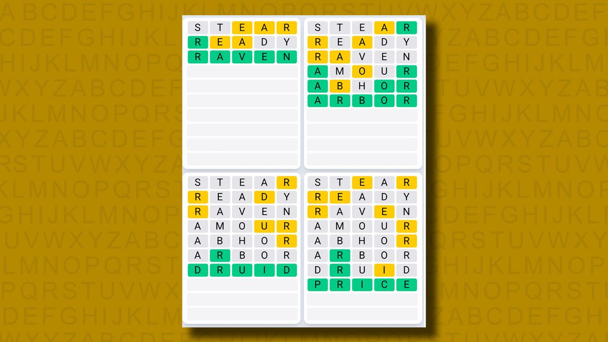 - Quordle #1245, Sunday 22 June: Wrest, craze, papal, scion
