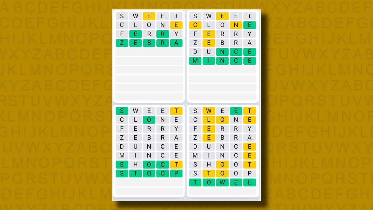 - Quordle #1245, Sunday 22 June: Wrest, craze, papal, scion