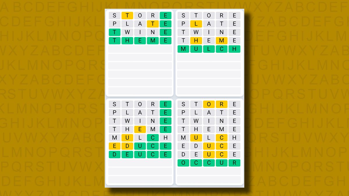 - Quordle #1245, Sunday 22 June: Wrest, craze, papal, scion