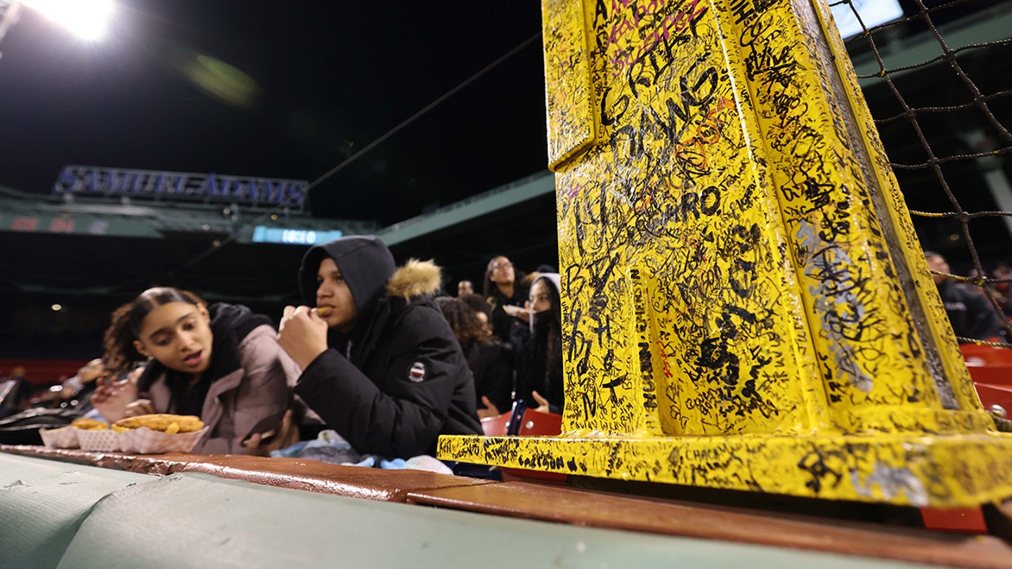 Brockton fans sit next to the annoying pole during their game versus Bridgewater-Raynham at Fenway Park on Wednesday, November 23, 2022. (Marc Vasconcellos / The Enterprise / USA Today Network)