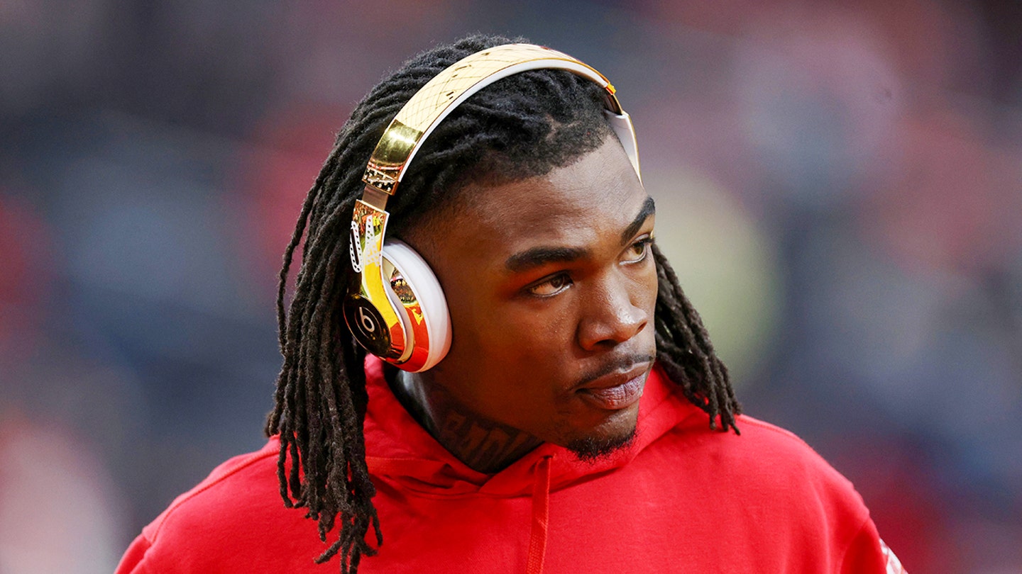 Kansas City Chiefs wide receiver Rashee Rice warms up before a game against the Cincinnati Bengals on Sept. 15, 2024, in Kansas City, Mo. (Reed Hoffman/AP)
