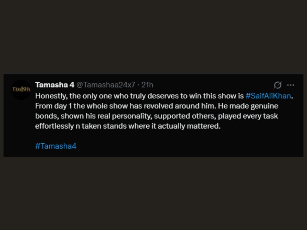 Another supported Saif’s alleged victory and wrote, “Honestly, the only one who really deserves to win this show is Saif Ali Khan. From day 1, the whole show turned around him. He made real bonds, showed his real personality, supported others, played every task effortlessly and took where it was actually something.”