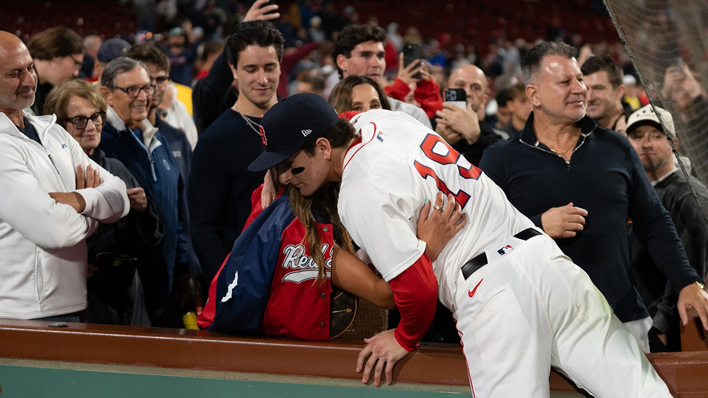 Roman Anthony #19 by Boston Red Sox is celebrating with the family after hitting his first major League Baseball Career Base Hit after the game between Tampa Bay Rays and Boston Red Sox at Fenway Park on Tuesday, June 10, 2025 in Boston, Massachusetts. (Natalie Reid/MLB photos via Getty Images)