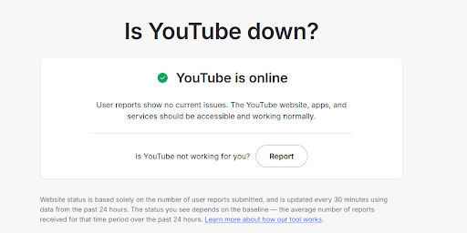 • The tool is dependent on user reports for function; If users report problems, ‘Is it down?’ reflects it