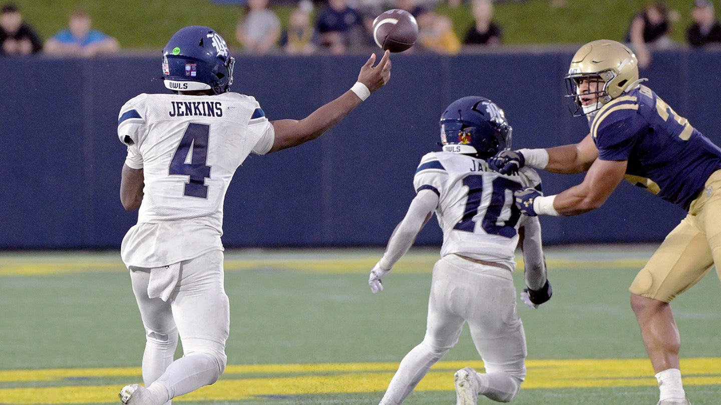 Rice Owls quarterback Chase Jenkins (4) passes during a game between the Rice Owls and the Naval Academy Midshipmen at Navy-Marine Corps Stadium in Annapolis, Maryland on September 27, 2025. (Mark Goldman/Icon Sportswire via Getty Images)