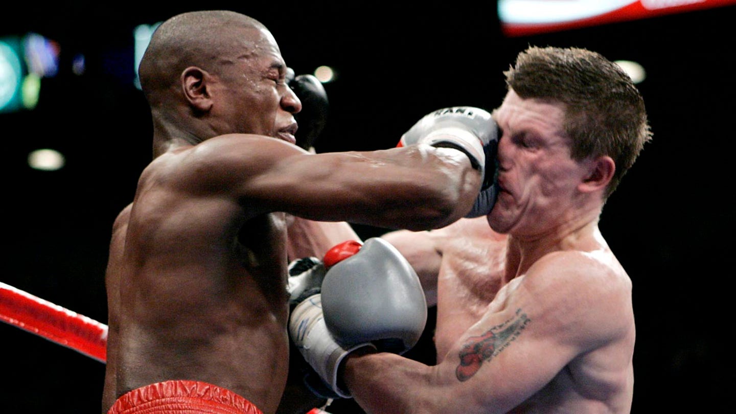 Floyd Mayweather Jr., Left, beats Ricky Hatton from the UK, during their WBC Welterweight Boxing title match at MGM Grand Hotel-Casino in Las Vegas, Saturday 8 December 2007. (AP Photo/Jae C. Hong, File)