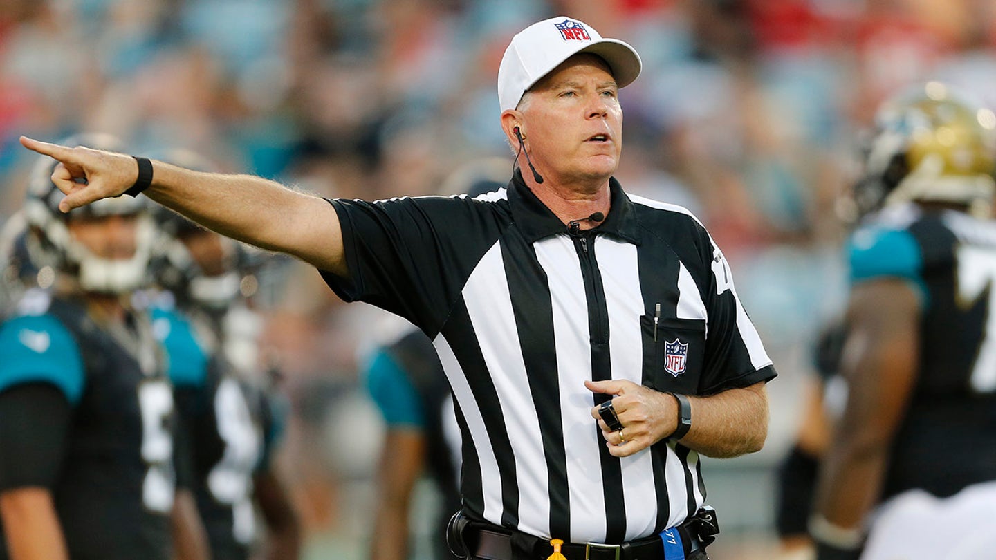 Referee Terry McAulay (77) makes the call during the first quarter between the Jacksonville Jaguars and the Tampa Bay Buccaneers during a preseason game on August 20, 2016 at EverBank Field in Jacksonville, Florida. (Joel Auerbach/Getty Images)
