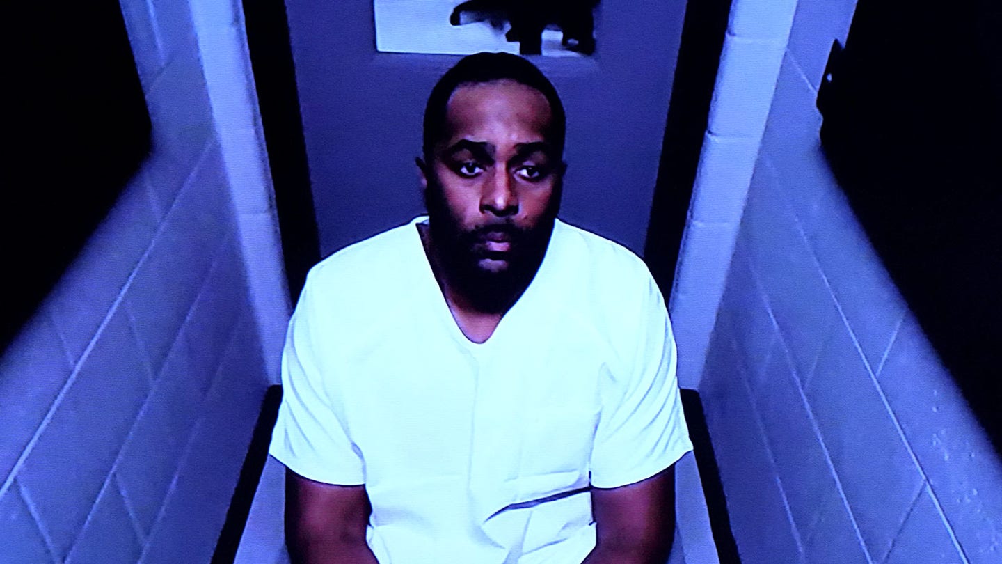 Former Michigan football coach Sherrone Moore appears via video in court in Ann Arbor, Michigan, on Dec. 12, 2025. (Ryan Sun/AP Photo)