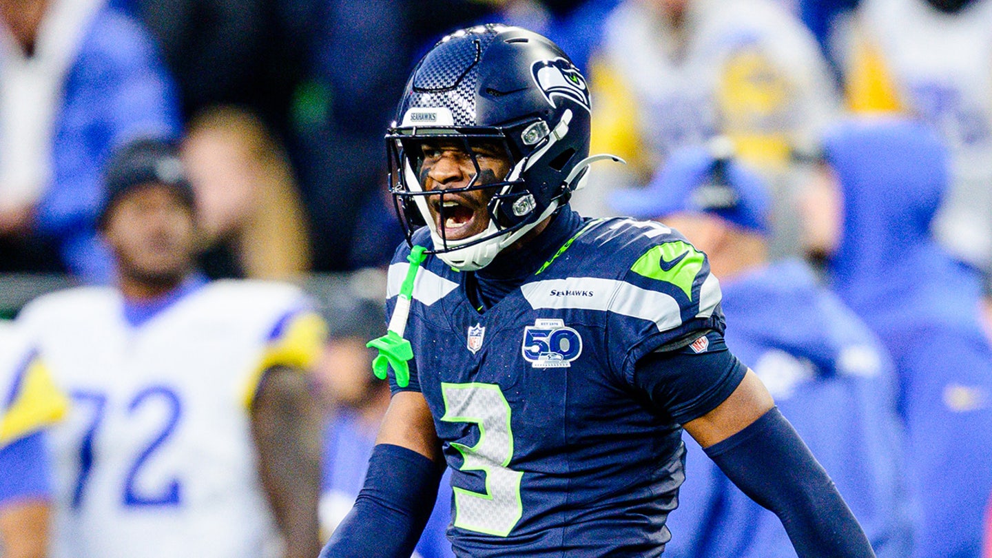 Nick Emmanwori of the Seattle Seahawks reacts during the second quarter of the NFC Championship game against the Los Angeles Rams at Lumen Field on January 25, 2026 in Seattle, Washington. (Jane Gershovich/Getty Images)