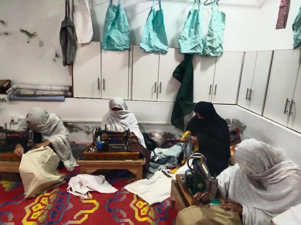 “During the training, participants first make fabric bags from different types of raw and old fabric provided by relatives and neighbors. The bags have anti-plastic and awareness slogans. After the initial training, they practice sewing clothes and learn other skills,” she said.