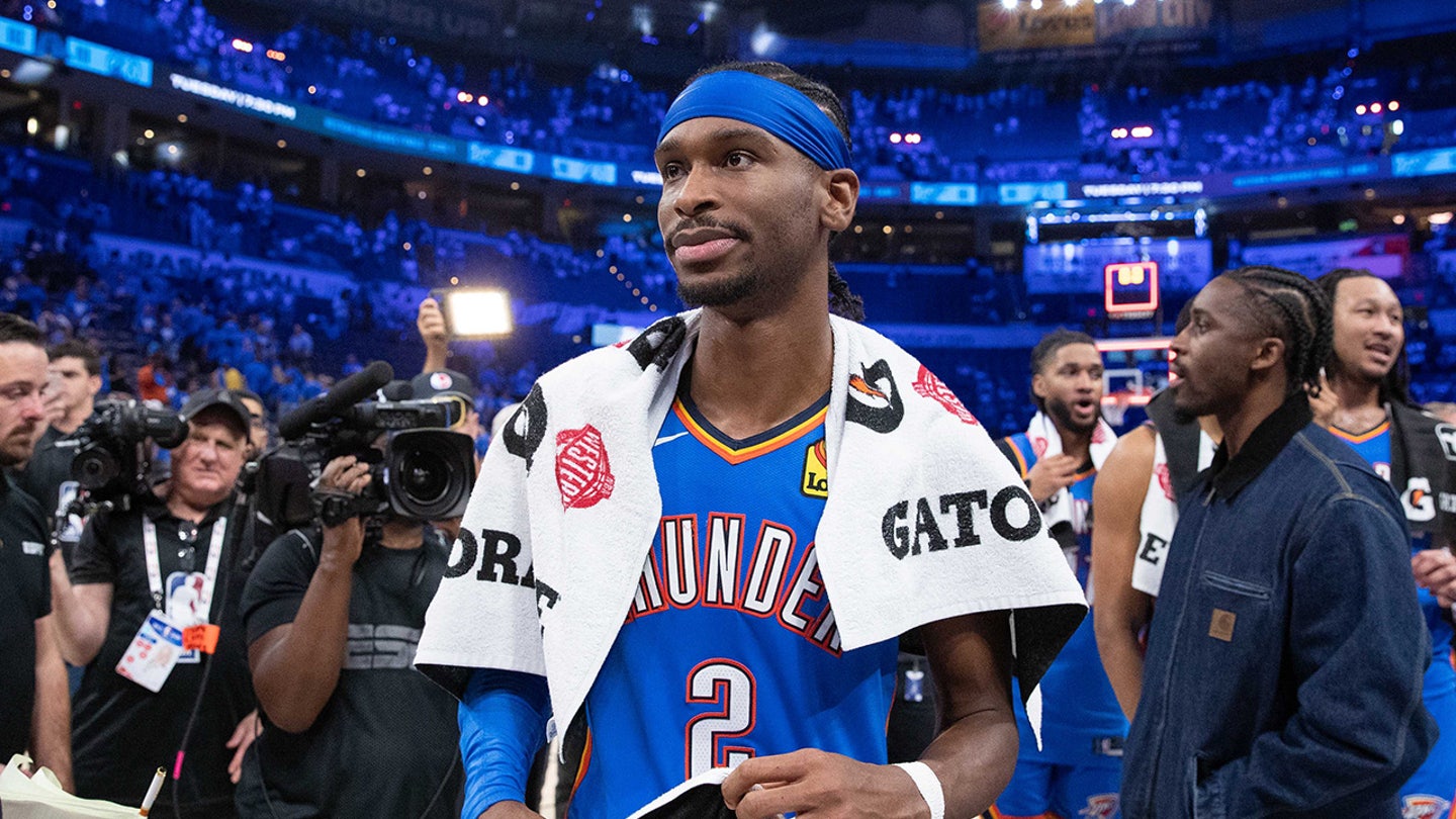 Oklahoma City Thunder guard Shai Gilgeous-Alexander (2) walks off the court after his team defeated the Denver Nuggets in Game 7 of the second round of the 2025 NBA Playoffs at Paycom Center. (Alonzo Adams/Imagn Images)