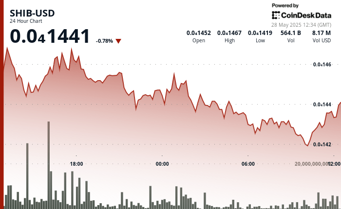 Shiba Inu has established a resistance zone around $ 0.00001467- $ 0.00001470, where the sale of high volume has prevented movement upwards, according to Coindesk Research’s technical analysis data model.