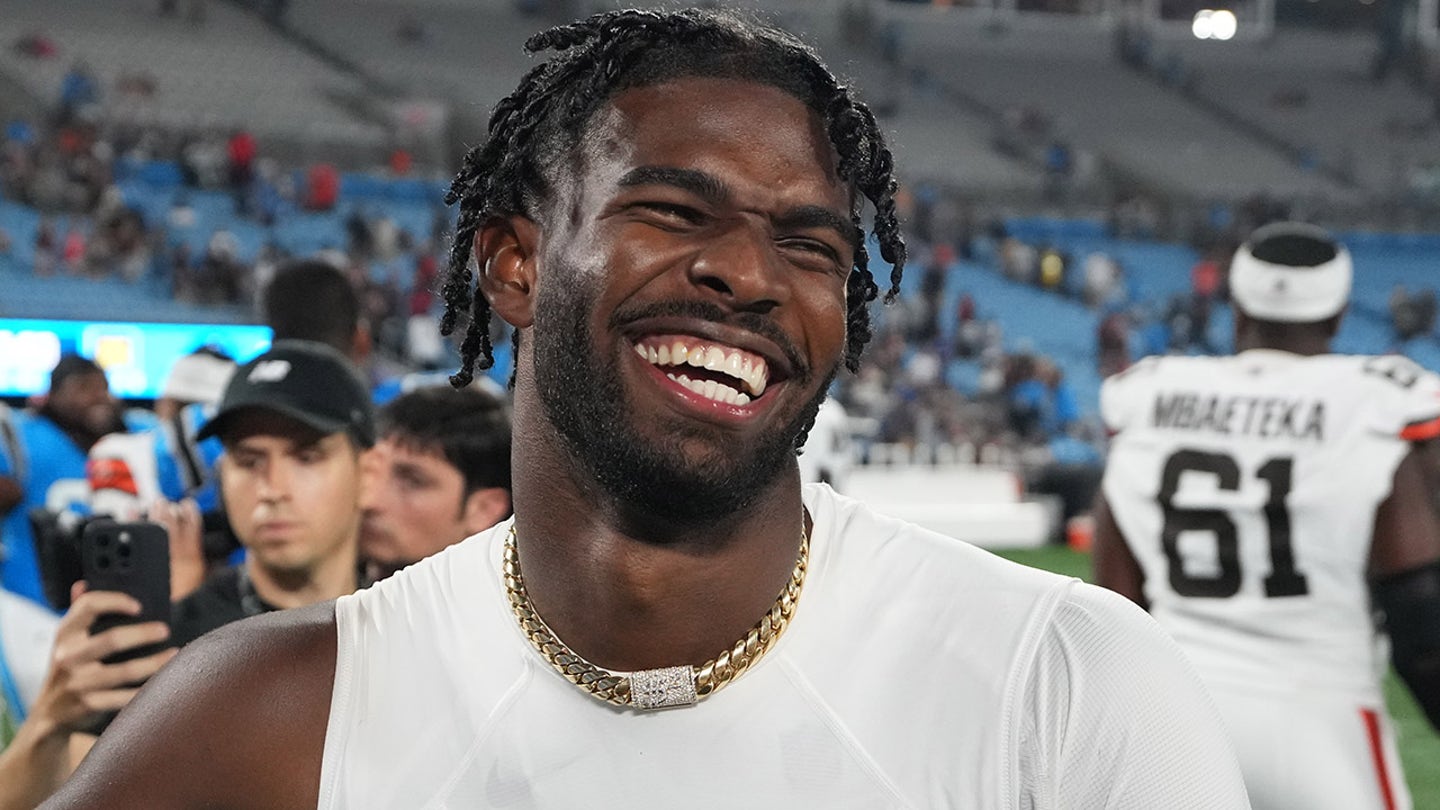 Cleveland Browns Quarterback Shedeur Sanders responds to the game at Bank of America Stadium in Charlotte, August 8, 2025. (Bob Donnan/Imag photos)
