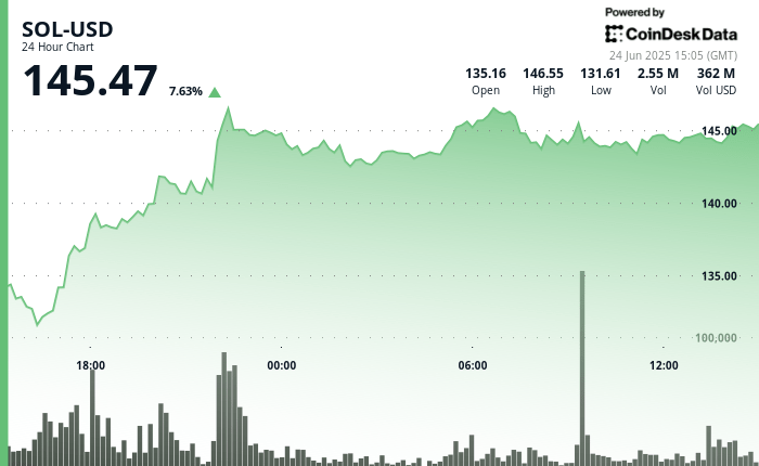 is traded at $ 145.47, an increase of 7.63% over the last 24 hours when dealers responded to a breakout wave supported by a strong futures activity. Rally got traction after a sharp rejection of $ 133.55 to $ 144.10, supported by above average trading volumes over 17:00 and 22:00 hours, according to Coindesk Research’s technical analysis model.