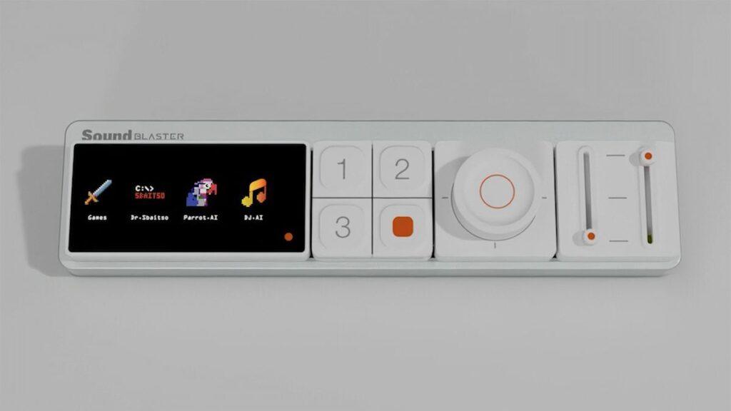 The various modules are magnetically attached and square or rectangular, and the standard kit gives you the aforementioned smart screen plus four programmable buttons, a rotary control knob and dual slider controls. The Horizon Base Unit has five square slots for the modules, but Sound Blaster will also make a taller version with six slots called the Vertex.