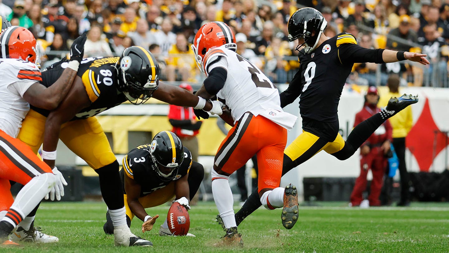 Chris Boswell of the Pittsburgh Steelers kicks a field goal against the Cleveland Browns in the first quarter of the game at Acrisure Stadium on Oct. 12, 2025, in Pittsburgh. (Justin K. Aller/Getty Images)