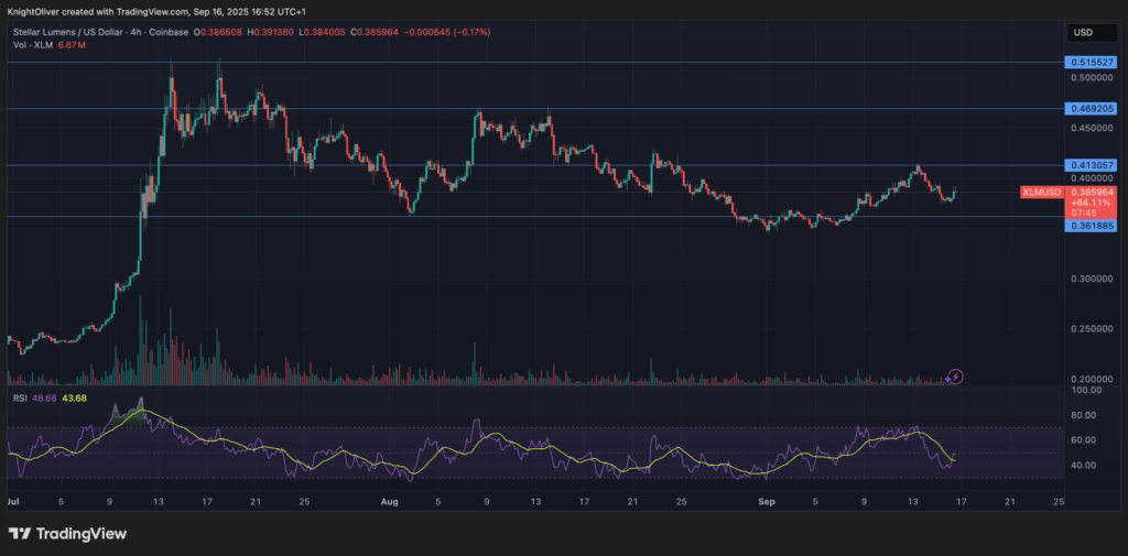 But Bullish Momentum quickly evaporated in the last session. Between 13:15 and 14:14 UTC, XLM slid back from $ 0.39 and deleted morning gains.