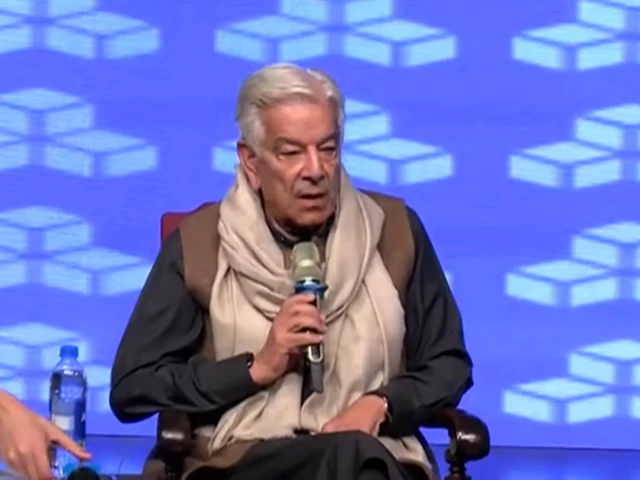 Defense Minister Khawaja Asif speaks during a session at Think Fest in Lahore on Saturday. Photo: Screengrab