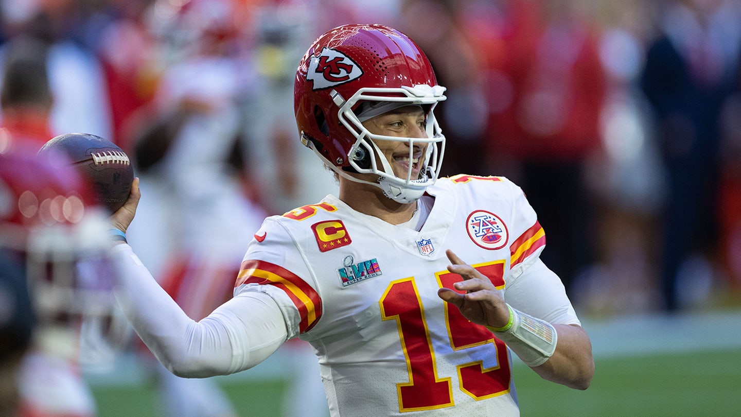 Kansas City Chiefs Quarterback Patrick Mahomes before action against Philadelphia Eagles in 2022 Super Bowl at State Farm Stadium. (Bill Streicher/USA Today Sports)