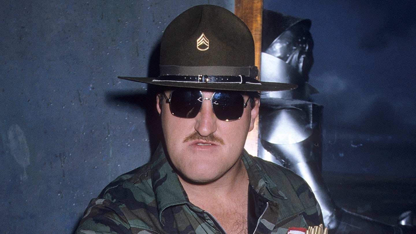 Sgt. Slaughter participates in the party of Raeanne Rubenstein’s new book, “Wrestlin ‘: Pro Wrestling Close up,” October 1, 1985 at Area Nightclub in New York City. (Ron Galella, Ltd./ron Galella Collection via Getty Images)