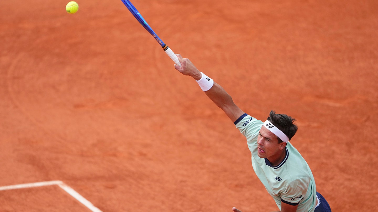 Germany’s Daniel Altmaier serves against Taylor Fritz from the United States during their first round match of the French Tennis Open, at Roland-Garros Stadium, in Paris, Monday 26 May 2025. (Lindsey Wasson/AP Photo)
