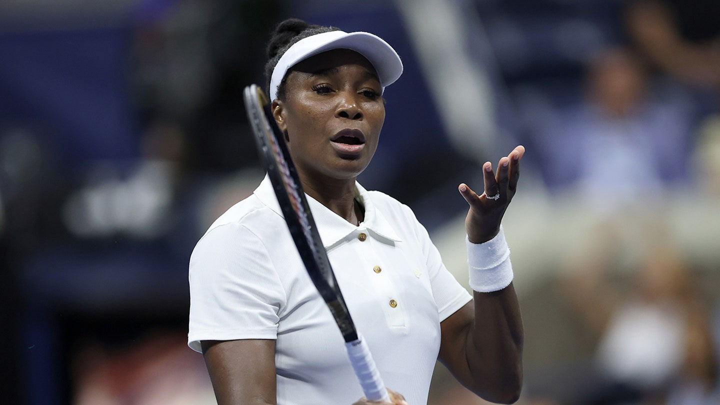 Venus Williams from the United States responds to Karolina Mentova from the Czech Republic during their woman’s singles first round match on day two of 2025 US Open in Usta Billie Jean King National Tennis Center on August 25, 2025 in the flush neighborhood of Queens Borough of New York City. (Clive Brunskill/Getty Images)