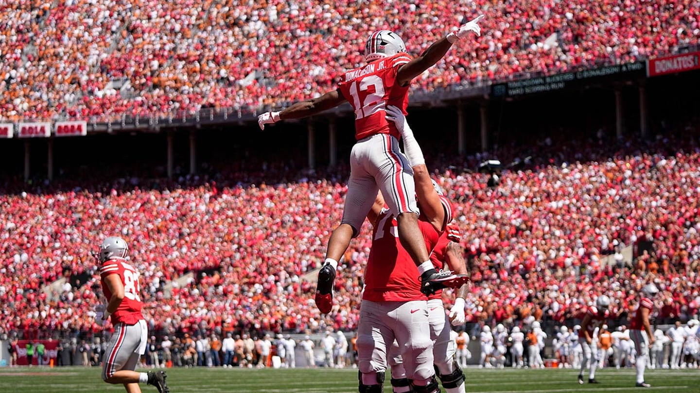 Ohio State again had to punt after only three pieces, but Manning returned the benefits of an interception returned to Buckeyes ’32. OSU came over the midfield, and on second-and-7 from Texas 40, Quarterback Julian Sayin Carnell Tate for the scoring to make it a 14-0 Buckeyes lead with 13:08 to go in the game.