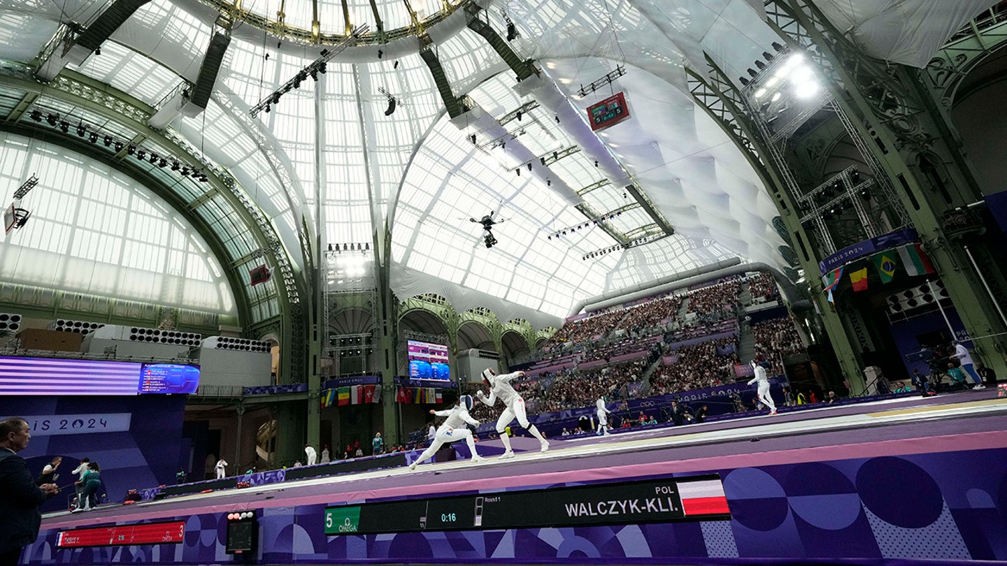 Ysaora Thibus in a women’s foil individual table with 32 matches during the Olympic summer matches in Grand Palais in Paris on July 28, 2024. (Andrew P. Scott -usa Today Sports)