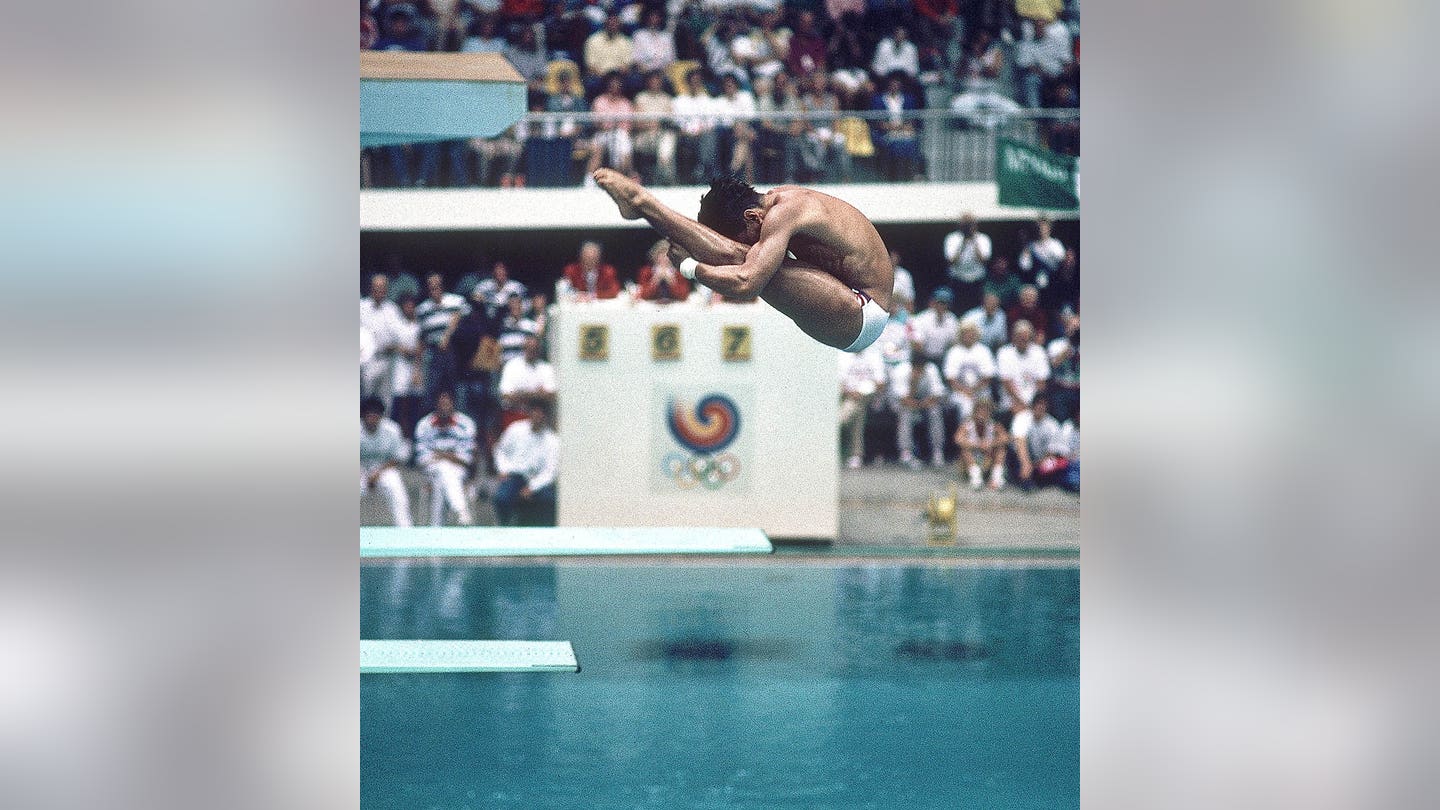 Greg Louganis in action during the men’s springboard competition from Seoul -Game from 1988 at Jamsil Indoor Swimming Pool on September 20, 1988. (George Long/USA Today Network)