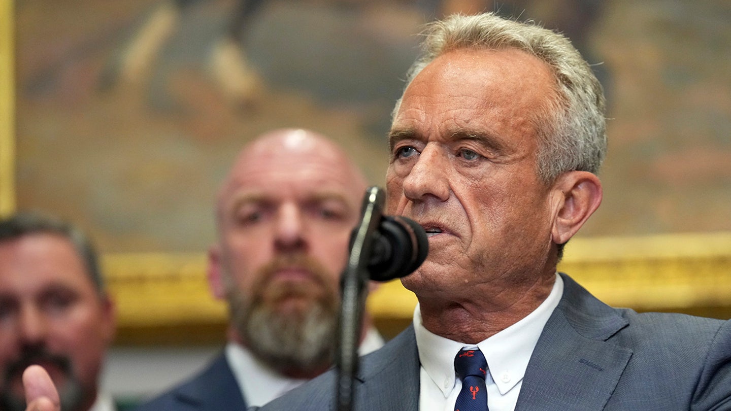 Secretary of Health and Human Services Robert F. Kennedy Jr. Speaking during an event in which President Donald Trump will sign a executive order that restarts the president’s fitness test in public schools, on Thursday, July 31, 2025, in the Roosevelt room of the White House in Washington. (AP Photo/Jacquelyn Martin)