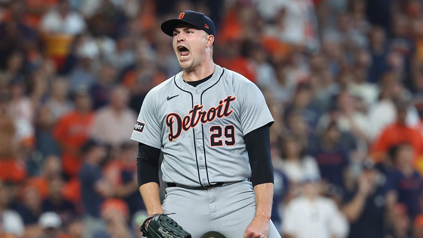 Tarik Skubal reacts after a strikeout against the Houston Astros in the sixth inning in Game 1 of the wild card round of the 2024 MLB Postseason at Minute Maid Park. (Troy Taormina-Imagn Photos)