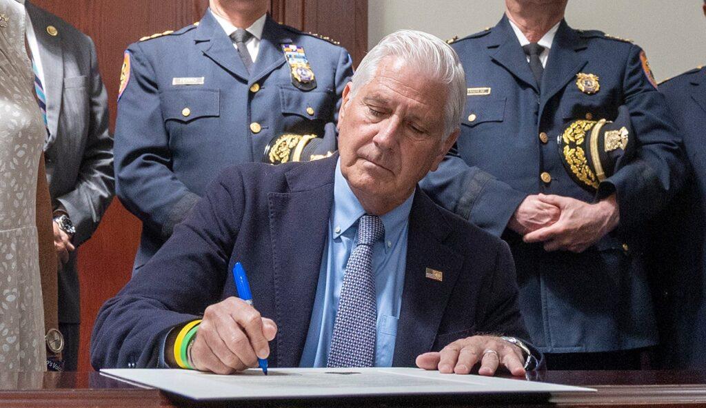 Nassau County -Operating Bruce Blakeman signs an executive order showing the county’s support for federal, state and local law enforcement by allowing masks for specific investigations in Nassau County on July 11, 2025 in Minola, New York. (Howard Schnapp/Newsday RM via Getty Images)